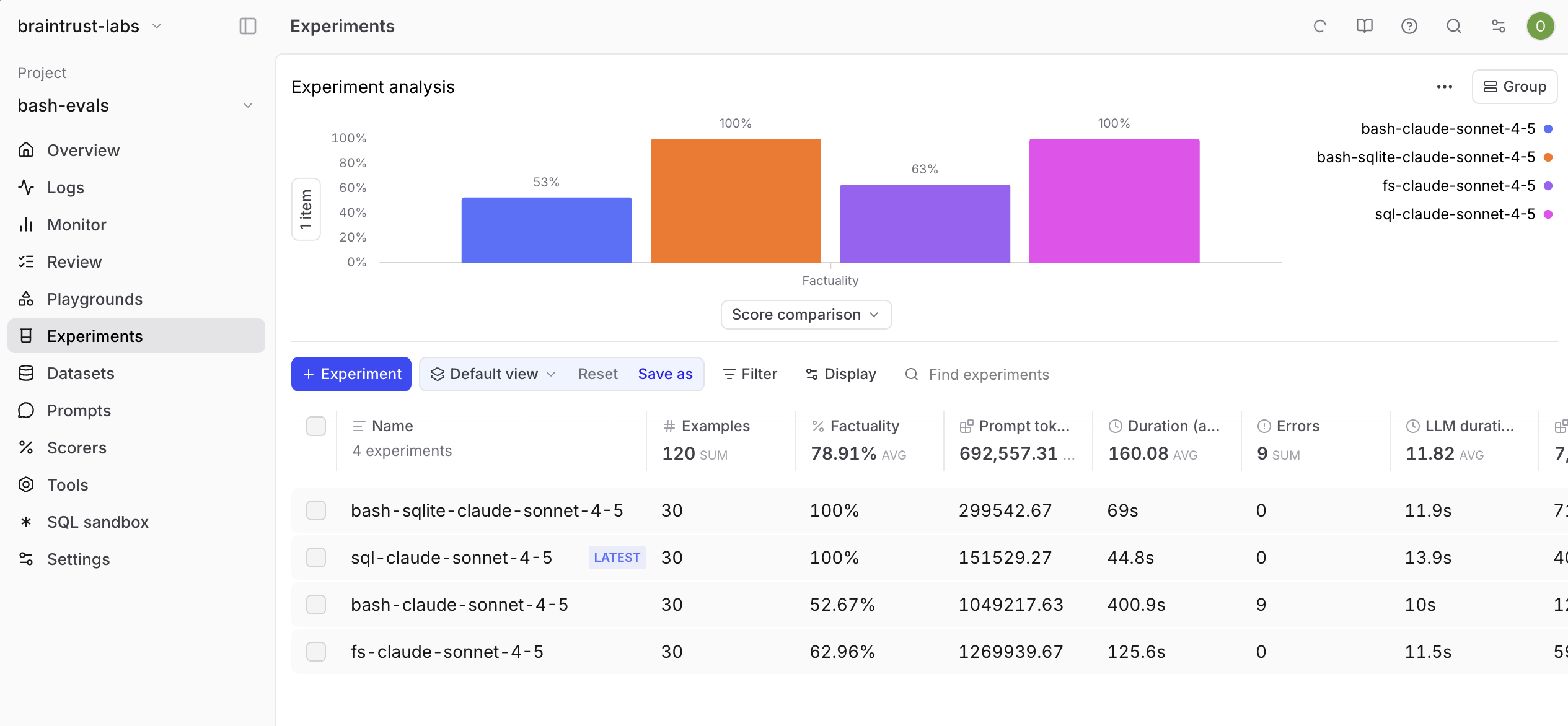 But the bigger lesson is about evals themselves. The back-and-forth between Braintrust and the Vercel team, with detailed traces at every step, is what actually improved the tools and the benchmark. Without that visibility, we'd still be debating which abstraction "won" based on flawed data.