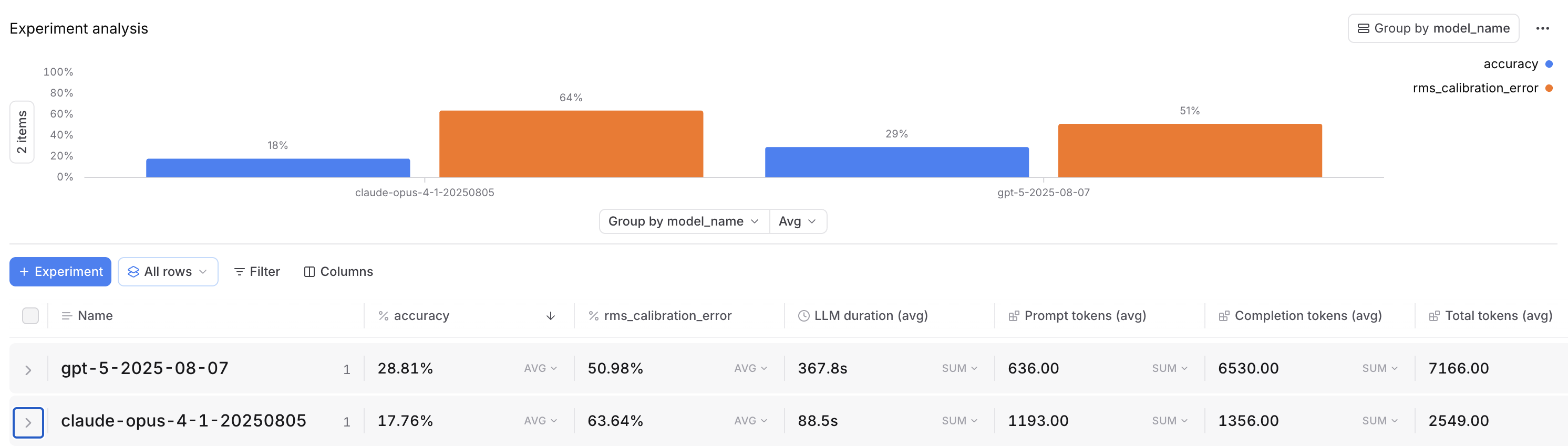 | Effort | Accuracy | RMS Calibration Error | LLM Duration (avg) | Total Tokens (avg) |